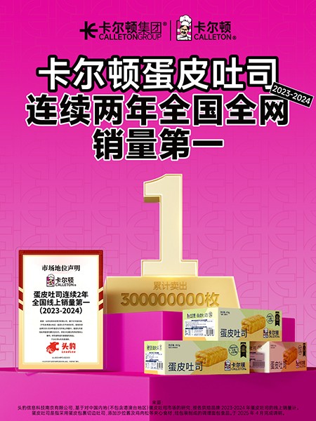 卡尔顿蛋皮吐司携手分众登入全国核心城市卡尔顿蛋皮吐司,连续2年(2023-2024)全国线上销量第一卡尔顿蛋皮吐司,咸甜不腻,年轻朋友都爱吃蛋皮吐司认准卡尔顿! #卡尔顿营养美一顿