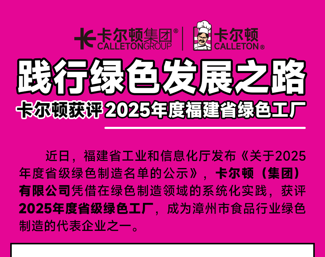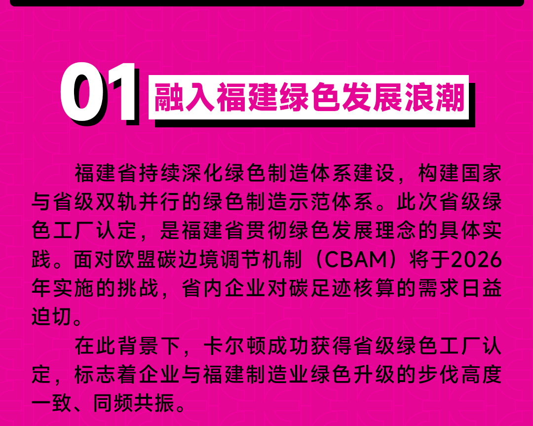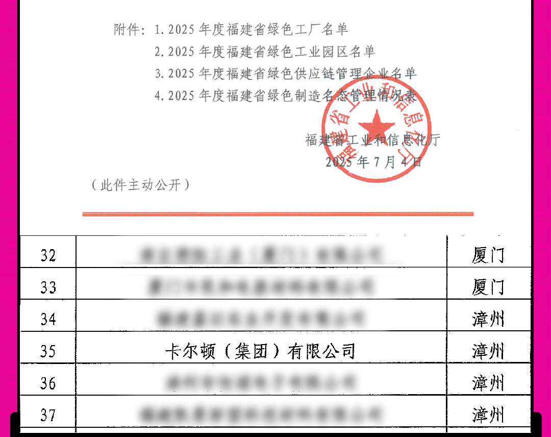 践行绿色发展之路丨卡尔顿获评2025年度福建省绿色工厂